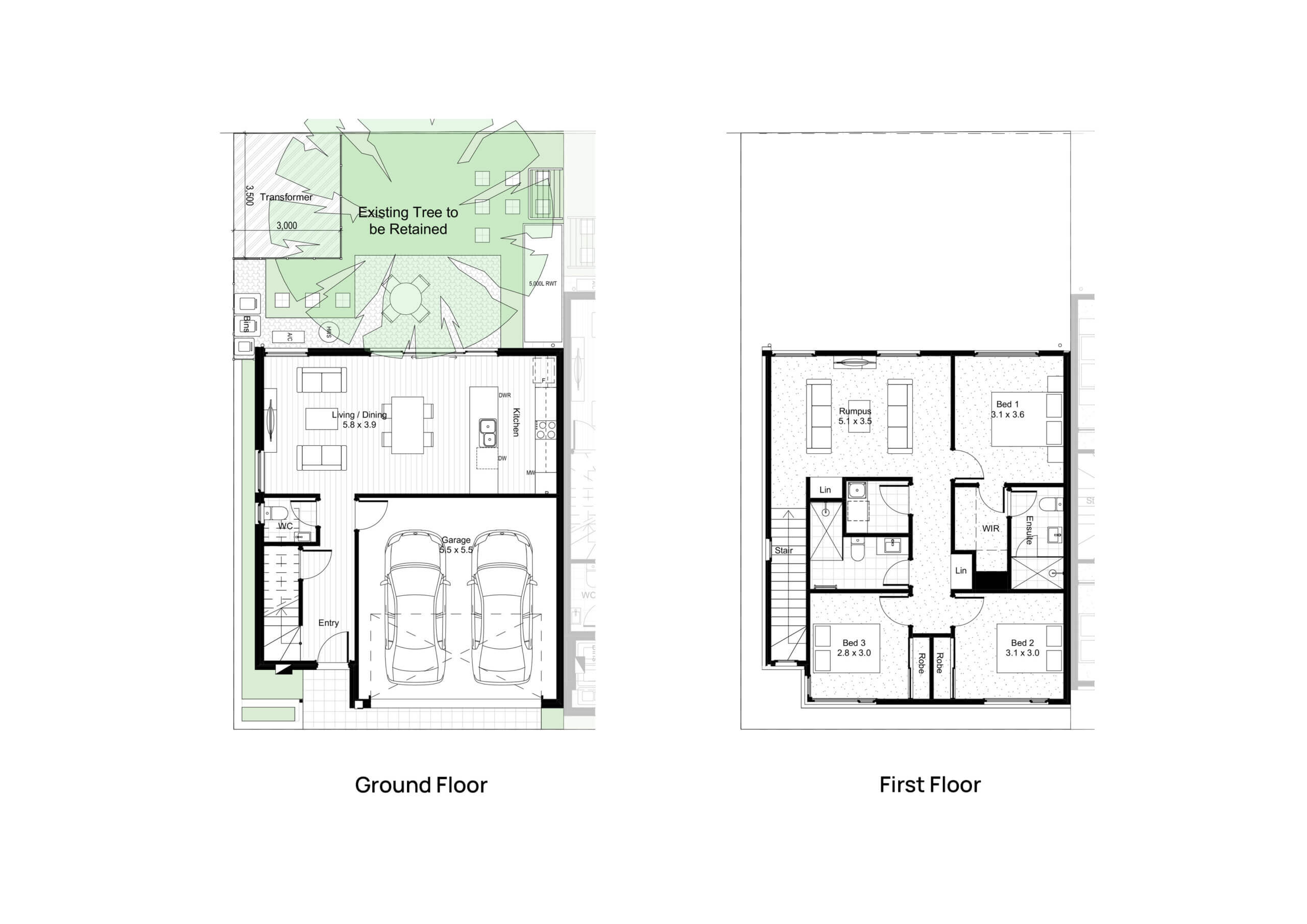 The Valencia is an expansive three-bedroom, 2.5-bathroom family home designed for comfort and practicality. Featuring ground-floor living and a convenient WC for guests, it’s ideal for entertaining. With ample storage, a separate laundry, and a versatile rumpus room or second living area, there’s space for everyone to enjoy. The alfresco area with landscaping out to an existing Gum tree enhances home living on this architecturally designed corner allotment.