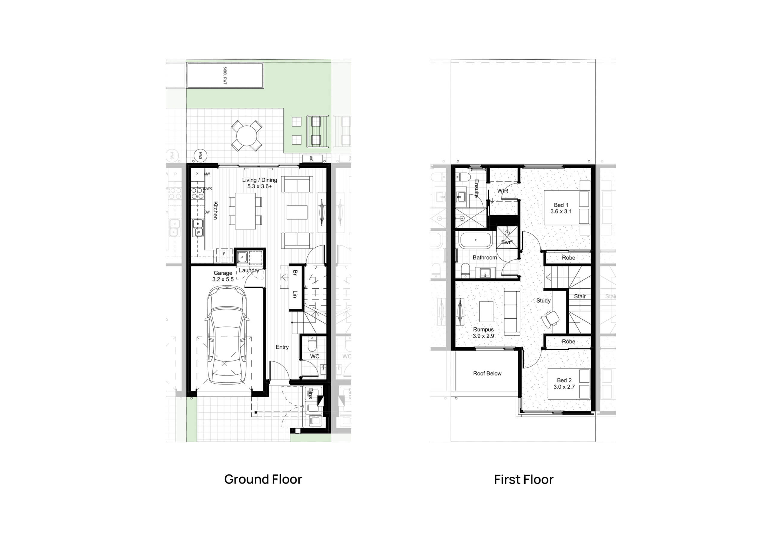 Step into the Linden – A two-bedroom, 2.5-bathroom home with smart design and thoughtful living spaces. Enjoy the convenience of ground floor living with a guest-friendly WC, plus a dedicated study nook for work or study. A rumpus room provides a flexible second living area, while the master bathroom leads into a dedicated walk-in-robe and ensuite. With an alfresco area and no rear neighbours, it’s a home that perfectly balances comfort and privacy.