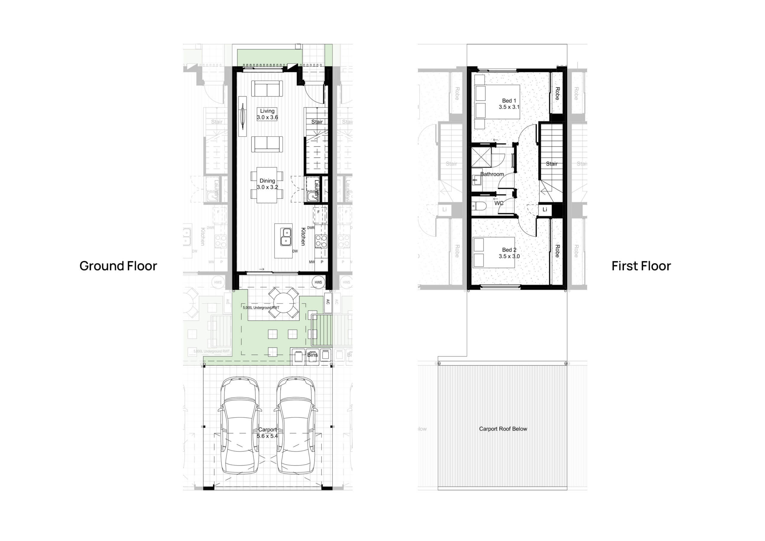 The Stirling is a stunning architecturally designed two-bedroom, double carport home that combines functionality with style. Its open-plan kitchen, dining, and living area features an island bench, creating a bright and functional space for everyday life and entertaining. A separate WC adds convenience, while the alfresco area with landscaping brings the outdoors in. An underground 5,000L rainwater tank ensures sustainable living without compromising style.