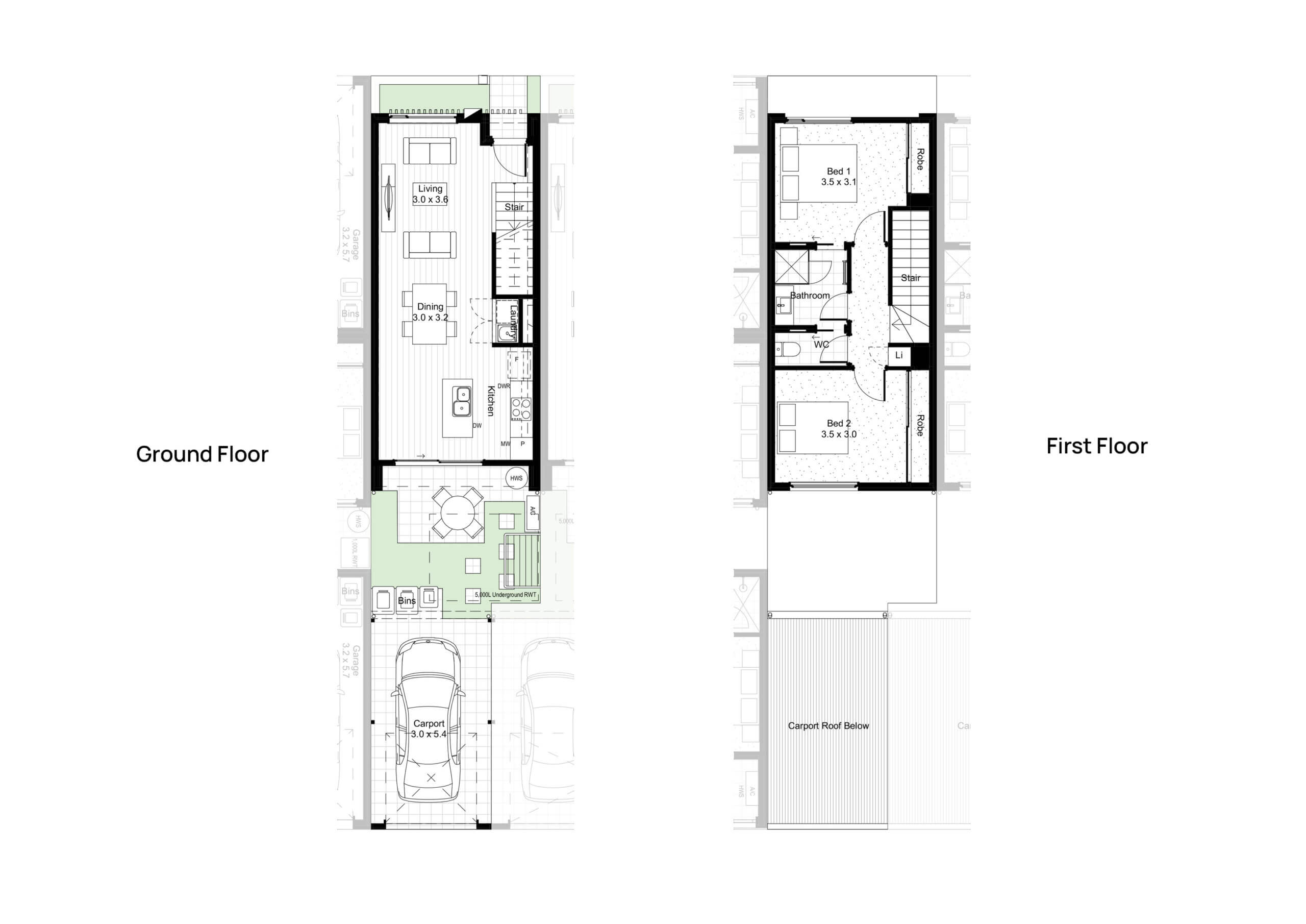 The Botanica is a stylish architecturally designed two-bedroom, one bathroom home that maximises space. Its open-plan living, dining, and kitchen area features an island bench, creating a bright and functional space for everyday life. A separate WC adds convenience, while the alfresco area with landscaping extends living outdoors. An underground 5,000L rainwater tank provides sustainable practicality without compromising design. Perfect for first home buyers or down sizers, this home offers a high-end, low-maintenance lifestyle.